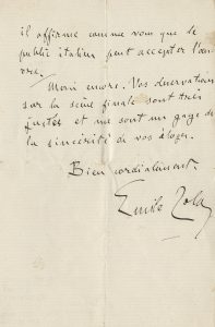 Zola Émile, Lettera autografa firmata inviata ad un collega. Datata 15 giugno 1887.