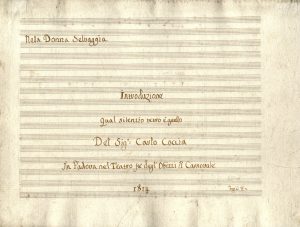 •Nella Donna Selvaggia / Scena / e / Duetto / Arbitro io son restate / [ [....] ] / In Padova nel Teatro fu degl'Obizzi il Carnovale / 1814.