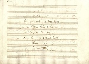 Mozart Wolfgang Amadeus, Quartetto / Per Clavicembalo o Forte Piano / con Violino, Viola, è Violoncello / […] Opera 29. Non datato [primi anni del XIX secolo].