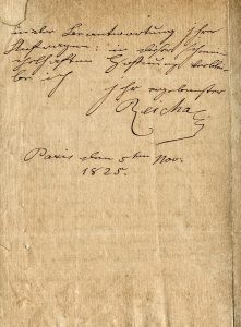 Reicha Anton, Lettera autografa firmata inviata al teorico e compositore Gottfried Weber, Darmstadt. Datata 5 novembre 1825, Parigi.