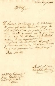 Romani Felice, Lettera autografa firmata inviata a Giuseppe Bertoldi, Ispettore delle R. Scuole di Torino. Datata 6 agosto 1853.