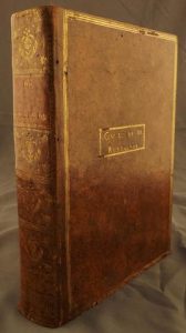 Édition originale, avec les caractéristiques du deuxième tirage, en reliure d’époque pleine basane racinée, dos lisse fleuronné, triple encadrement de filets or sur les plats avec le nom du possesseur :