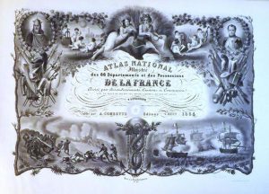 in-folio oblong à l’italienne (37 x 55 cm.) collationné complet d’un titre lithographié, une grande carte dépliante de la France, 93 cartes départementales foliotées de 1 à 93 et 6 cartes non foliotées pour les continents.