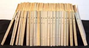 26 volumes in-12 carré brochés couverture d’Ingres vieux rose rempliée. Collection complète de 26 nouvelles originales écrites par 26 auteurs différents dont la première lettre du nom suit l’alphabet de A à Z.