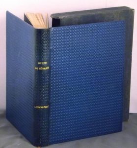 in-8° carré illustré de compositions en couleurs par George BARBIER et numéroté sur Rives. Relié plein chagrin bleu nuit constellé de petit cercle poussés à froid sur l’ensemble, tête dorée, doublure intérieure, couverture conservée, étui.