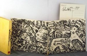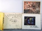 •une lithographie au format 17 x 22,5 cm., justifiée 52/60 avec un texte autographe assez délirant pour souhaiter ses bons vœux de 1972 à une « très chère Dame »... et une carte postale signée, datée 1979.