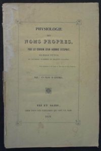 MARTIN [par] savoisien - Physiologie des Noms Propres, par le cousin d’un homme d’esprit, membre futur de plusieurs académies et sociétés savantes. Ibi et Alibi (Chambéry), chez tous les libraires qui ont un nom, 1849.