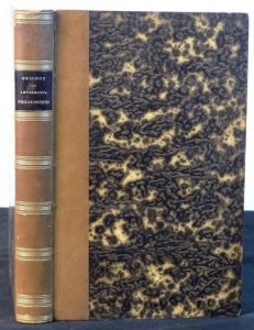 in-8° de xii-558 pp., relié demi-veau cognac, dos lisse orné de huit rangs de quintuple filets or en place de nerfs, pièce de titre noire.