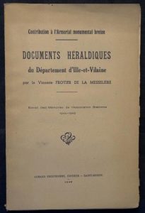 FROTIER de la MESSELIÈRE (Vicomte Henri) - Contribution à l’Armorial monumental breton - Documents Héraldiques du Département d’Ille-et-Vilaine. St-Brieuc, Prud’homme 1946, plaq.
