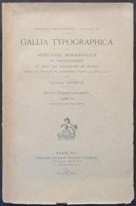 • LEPREUX Georges - Galliae Typographicae Documenta ou inventaire de sources originales de l’histoire de l’imprimerie et des imprimeurs…