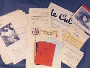 Outre les statuts de la Confrérie, sont proposés une quarantaine de courrier tapuscripts émanant de la Chancellerie relatifs aux nombreux « fessetins » et une douzaine de cartons d’invitations aux différentes « manifessetations » telles que : « Le Fessetival du Q »,