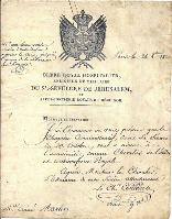 Ordre Royal Hospitalier Du Saint Sepulcre De Jerusalem Ens. de 2 documents : Lettre d’admission sign. par le Secrétaire Général Chevalier, grande vignette, Paris, 1820, en faveur d’Aimé Martin / Grand diplôme de Chevalier sur vélin (47 x 58