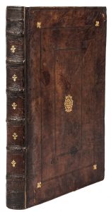 in-folio de [18] ff., 1032 col., [17] pp., reliure de l’époque, veau havane, trois cadres successifs de filets à froid sur les plats, fleurons d’angles dorés et à froid, fleuron losangé au centre, dos à nerfs orné defleurons dorés (restaurations aux angles et aux charnières).