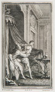 "Un des livres illustrés les plus réussis de tout le XVIIIesiècle" selon Cohen. Avec ses scènes galantes dans des décors de salon XVIIIe et ses ravissants culs-de-lampe toujours renouvelés, ce Boccace est l’un des livres les plus représentatifs du goût bibliophilique sous Louis XV.