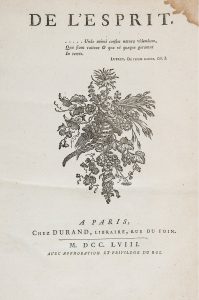 HELVÉTIUS Claude-Adrien. De l’Esprit. Paris, Durand, 1758 ;