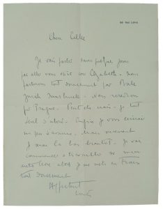 Il lui parle de son départ pour un voyage avec elle et Elisabeth CRAIG et lui annonce, «je vais commencer à travailler sur mon autre livre alors je me mets en train tout doucement» (il s'agit du début de la rédaction de Mort à crédit)
