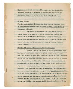 (CÉLINE Louis Ferdinand). L'un des exemplaire ronéotypé du document écrit par l'écrivain, Réponses aux accusations formulées contre moi par la Justice Française au titre de trahison et reproduites par la police judiciaire danoise au cours de...