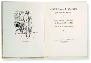 (BONNARD Pierre) ANET Claude. Notes sur l'amour. Éditions Crès, Paris, 1922,