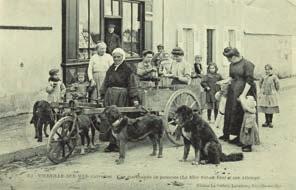 Calvados 2 cpa attelages de chiens : Vierville (marchande poissons), Calvados (marchande de moules)