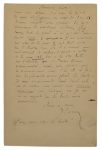 Jules Verne y fait référence aux épreuves de l'édition in-18 de Kéraban-le-têtu et aux corrections s'y rapportant. En post-scriptum, il demande à M. Auguste Alliou : Avez-vous reçu le buste? Il fait sans doute ici référence au buste en bronze d'Hetzel alors en cours de réalisation (voir lot n°7).