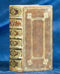 Marot (Clément). Les Oeuvres De Clement Marot de Cahors en Quercy, valet de chambre du Roy. Lyon, Jean Gauthier, 1597. In-16 de [32]-2bl.-796 pages, maroquin brun, plats à la Du Seuil, dos orné, tranches mouchetées (reliure légèrement