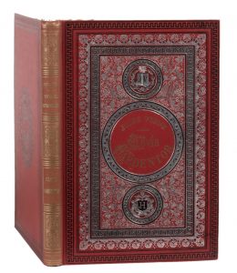 Abandonné depuis quelques huit années, ce cartonnage « aux initiales JV-JH » fut repris par Hetzel pour satisfaire une commande émanant de Belgique. Toutefois, pour dissiper toute confusion avec le passé, il opta pour ce mélange or et argent qui lui sied si bien.