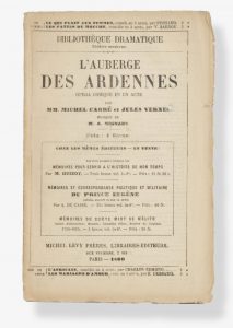 The Inn in the Ardennes, One-act comic opera by MM. Michel Carré and Jules Verne. Musique A. Hignard. Paris, Michel Lévy, 1860. Collection Bibliothèque Dramatique.
