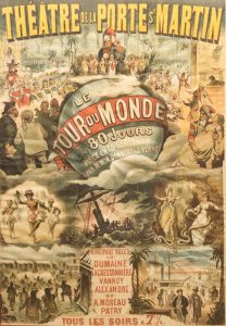 Theatre poster. Around the World in Eighty Days by A. Dennery and Jules Verne. Paris, Théâtre de la Porte St-Martin, 1874.