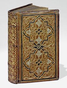 listels rehaussés de cire brune, déterminant un encadrement et deux compartiments centraux, et huit fleurons rehaussés de cire blanche, dos lisse orné, coupes ornées, tranches dorées (Reliure de l'époque).