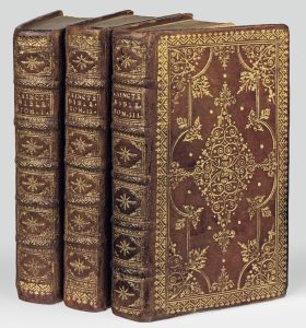 (Clément) et Théodore de BÈZE. Les Pseaumes de David. Charenton, Des-Hayes & Cellier, 1657. 3 volumes in-12, basane maroquinée fauve ornée d'un riche décor doré aux petits fers, dos orné, tranches dorées (Reliure de l'époque).