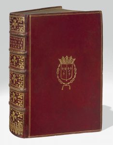 Édition originale du grand traité de théologie politique de Bossuet. # Dans cette œuvre majeure, publiée cinq ans après la mort de l'auteur par son neveu, l'évêque de Meaux justifie la monarchie absolue et de droit divin par les Écritures et précise surtout sa conception du prince chrétien. Rousseau y répondra directement dans Du contrat social. # L'ouvrage est précédé de la lettre au pape Innocent XI sur l'instruction du dauphin, en latin, écrite par Bossuet en 1679 mais retrouvée plus tard par Ledieu. # Un beau portrait de l'auteur gravé sur cuivre par Edelinck d'après Hyacinthe Rigaud orne le volume, ainsi que deux vignettes en-tête gravées par Bernard Picart, dont une d'après Coypel, un cul-de-lampe et deux lettrines ornées. # Bel exemplaire sur grand papier magnifiquement relié aux armes de la princesse de Condé, rare et séduisante provenance. # Louise Françoise de Bourbon (1673-1743), dite Mademoiselle de Nantes, fille naturelle de Louis XIV et de Madame de Montespan, duchesse de Bourbon, puis princesse de Condé par son mariage avec Louis III de Bourbon-Condé (1668-1710), duc de Bourbonnais et sixième prince de Condé. L'importante bibliothèque qu'elle s'était constituée au Palais Bourbon (actuel siège de l’Assemblée nationale), édifié pour elle entre 1722 et 1728, était réputée pour la qualité de ses reliures, dont la plupart avaient été exécutées par Padeloup et Derome. # De la bibliothèque Thomas Walpole, avec ex-libris. # Dos et coins restaurés avec repeintes sur les dorures. Le faux-titre et le titre étant réemmargés, le portrait a pu être ajouté postérieurement. # Tchemerzine, I, 894 b – Brunet, I, 1139 – Cohen, 178 – Rochebilière, n°274.