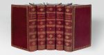 Une des premières éditions françaises des œuvres d'Helvétius dans laquelle on retrouve les pièces de l'édition de Londres, 1777, et Les Progrès de la Raison dans la recherche du vrai. # Elle est ornée en portrait frontispice de l'auteur gravé par Vérité d'après Charles André van Loo. # Bel exemplaire sur grand papier vélin filigrané dans une superbe reliure en maroquin rouge de l'époque. # Des bibliothèques C. Sensier et Louise Lubeck, avec ex-libris.