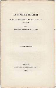 [LIBRI (Guillaume)]. Collection de mémoires et documents sur l'affaire Libri. Ensemble 10 pièces in-8, broché ou en feuilles.