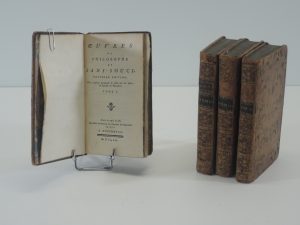 4 volumes, complet des 2 tableaux plein veau, 1 coiffe abimée, manque 2 pièces de titre.