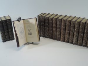 24 volumes reliés en demi bas à coins , tête or ,titre en 2 pièces, dos orné, filets or sur mors et coins.