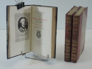 3 volumes reliés en demi maroquin à coins, titre or et dos avec fleurons mosaïques, filets or mors et coins.
