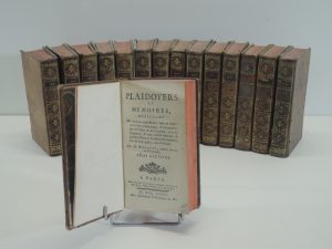 15 volumes, tranches rouge, titre sur 2 pièces de peau, dos orné.