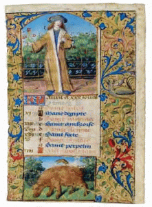 ENLUMINURE SUR VELIN avec rehauts d'or, de forme rectangulaire (115 x 78 mm),