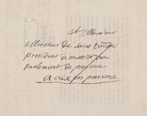 Luc CLAPIERS de VAUVENARGUES (Marquis de) 1715-1747 - [Pontier Augustin Imprimeur Libraire à Aix 1756-1833]. Lettre relative à la mort de la mère du Président du parlement de Provence Jules Fauris de St Vincens, Paris 20 juillet 1746.