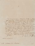• 3 pièces non signées l’une d’elle annotée par Suffren. Lettres écrites « A bord du Héros », à Gondelour, à Négapatam à propos de la bataille de Gondelour contre la flotte anglaise et les échanges de prisonniers qui s’ensuivirent.