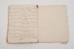 Cahier de16 ff. in-4 sur papier vergé : 1 p. de titre ; 1 p. blanche ; 7 ff. manuscrits à l’encre brune ; 8 ff. blancs.