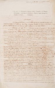 Je me garderai bien de parler de la hollande à V.A.S.E. qui sans doute la connait mieux que moi. Je me bornerai à l’entretenir de quelques objets relatifs à ses gouts de prédilection et qui ne sortent point du cadre ne notre classe histoire et littérature