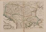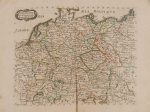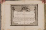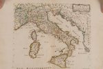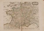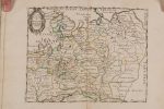 in-4, titre frontispice, 32 ff., 12 cartes avec les contours coloriés d’époque, mouillures éparse, quelques petites déchirures en marge, veau brun granité de l’époque, dos à nerfs orné et doré, tranches avec liseré doré.