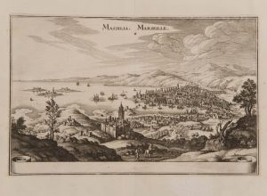 2 GRAVURES PAR MERIAN, XVIIe Massilia Marseille.