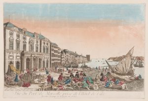 VUE D'OPTIQUE, MARSEILLE, XVIIIe. « Vue de Marseille prise de l’Hôtel de ville au temps de la peste ».