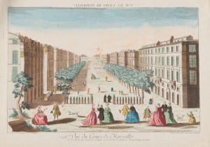 2 VUES D'OPTIQUE. Vue d’optique, Marseille, XVIIIe « Vue du cours de Marseille », Belsunce.