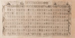 GALLICE de, M.I.F. État cronologique des noms et armoiries des nosseigneurs les officiers de la cour du Parlement de Provence depuis son établissement jusqu’à présent. 1713. (De 1501 à 1773). Suite de 4 planches d’armoiries numérotées...