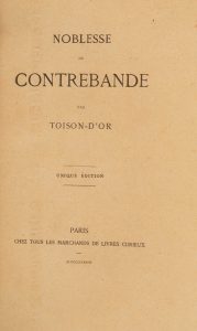 [NOBLESSE] [CALONNE (Alphonse de)]. - Noblesse de Contrebande par Toison-d’Or - Paris, Chez tous les Marchands de Livres Curieux, 1883.