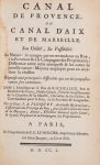 [PROVENCE] FLOQUET (Jean-André). - Canal de Provence, ou canal d’Aix et de Marseille. Son Utilité, sa Possibilité, sa Nature : Avantages qui en reviendront au Roy, à la Provence & à la Compagnie des Propriétaires (…) Paris, P. G. Le...