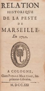 [MARSEILLE] [BERTRAND (Jean-Baptiste)] - Relation historique de la peste de Marseille en 1720. Cologne, Pierre Marteau, Imprimeur-Libraire, 1721.